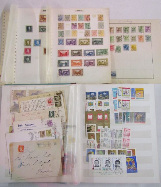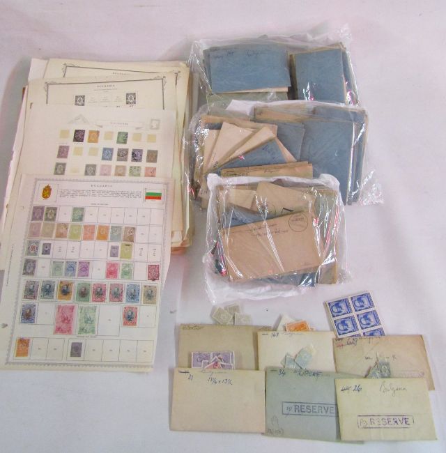 Stamps of Bulgaria & Czechoslovakia: Large box of muddled remaindered collections and mint/used accumulation on album pages and in numerous envelopes by type, some bags, and containers. Mostly definitives and commemoratives and some of other countries mainly European states such as Italy, Luxembourg, and Poland. Many of earlier issues from the late 1800s on, a few earlier. 1000s.