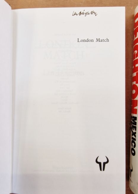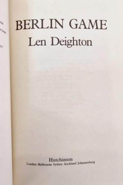 Deighton, Len  Triology, Game, Set and Match "Berlin Game", Hutchinson, 1983, red ep, black cloth with silver titles, dust wrapper not price clipped  "Mexico Set", Hutchinson, 1984, signed by the author on the half-title, red ep, black cloth, silver titles, dust wrapper not price clipped  "London Match", Hutchinson, 1985, signed on the half-title by the author, red ep, black cloth, dust wrapper not price clipped (3)
