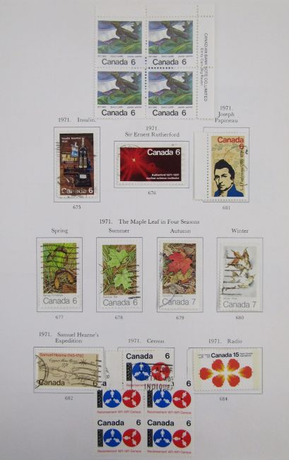 SG Canada stamp album of mint and used QEII issues from 1967 to 1994. Definitives, commemoratives, booklet, coil with se-tenant and blocks/strips, and perforation varieties.