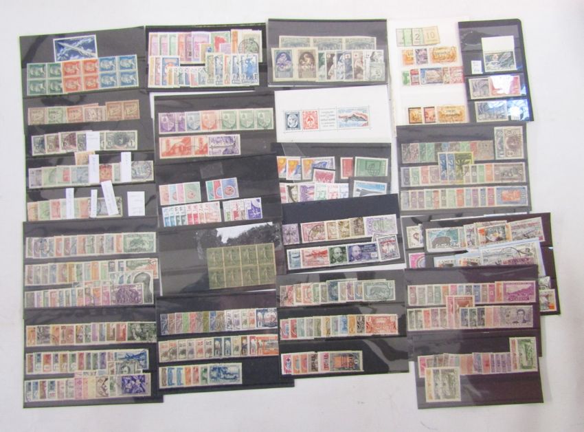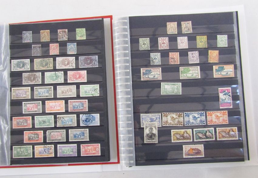 French colonial stamps: Three binders, envelopes, sleeves, and 20+ stock-cards of early to more modern issues including mint & used definitives, commemoratives etc. Good sets & scarcer issues seen.