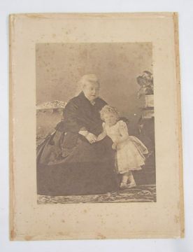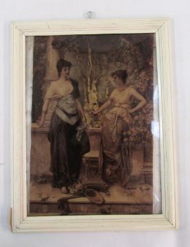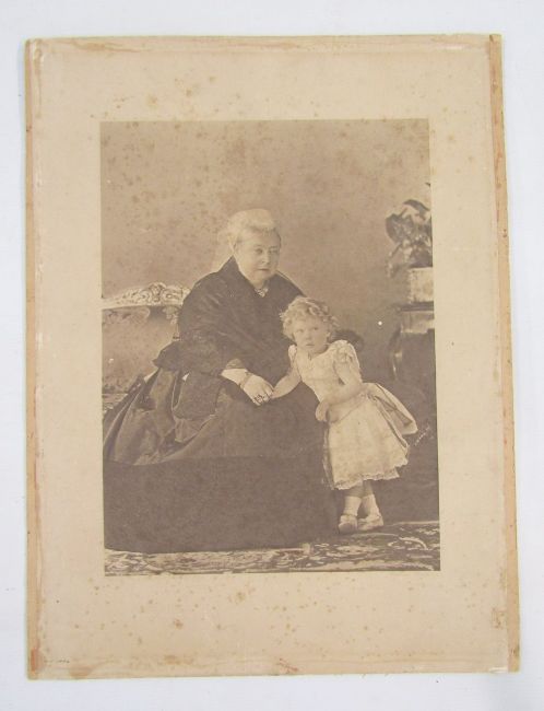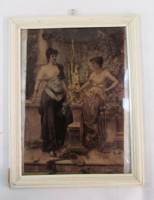 Rembrandt photogravure studio portrait of Queen Victoria and Prince Edward (King Edward VII), by Hughes and Mullins, together with a Victorian crystoleum print of two women in a garden after J. Bernard (Hans Zatzka, 1859-1945), 29.5cm x 39.5c, exc. frame