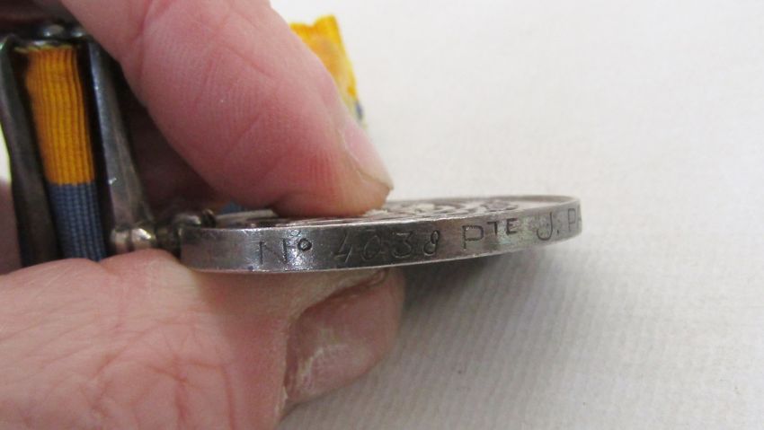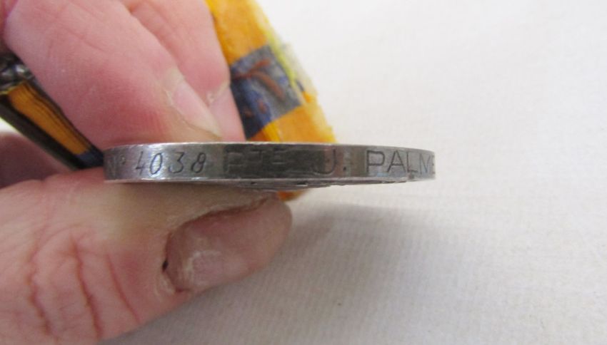 Queens Sudan medal 1899, named to '4038.Pte.J.Palmer.1/N.Staff.R', Khedives Sudan medal 1896-1908, named to 'No 4038.Pte.J.Palmer1.N.Staff.R.'