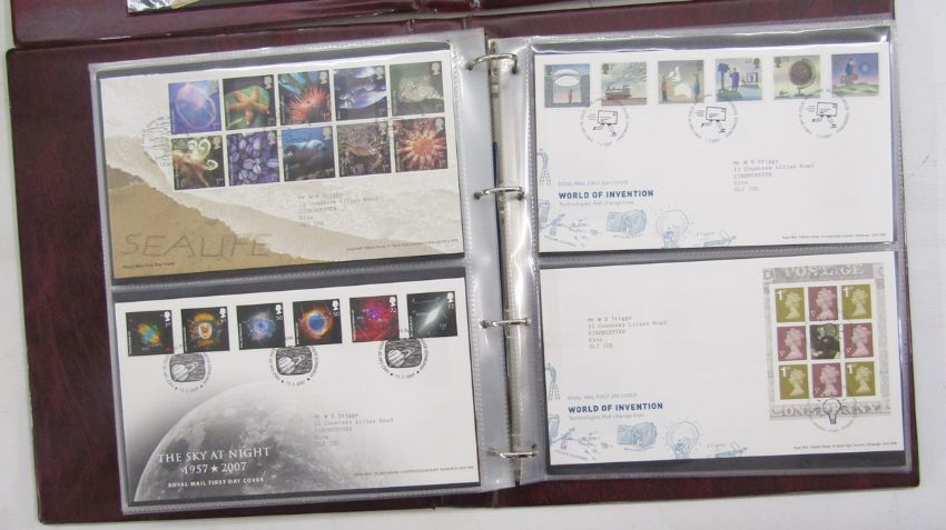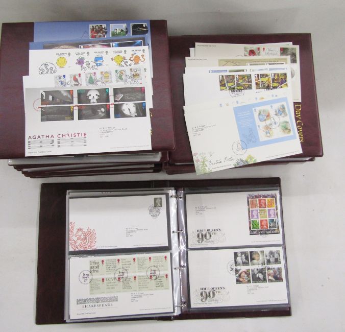 GB Stamps: 1967-2016 cover collection in 8 Royal Mail maroon albums of mostly typed address, philatelic bureau purposed-to-event first day covers plus a few covers pre-decimal, not all FDC - one KGV. Over 600, most in clean, well presented condition.