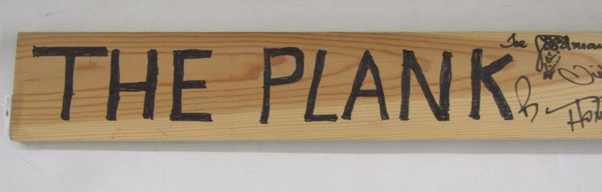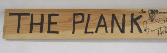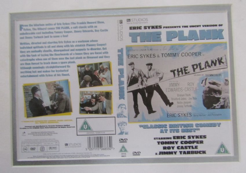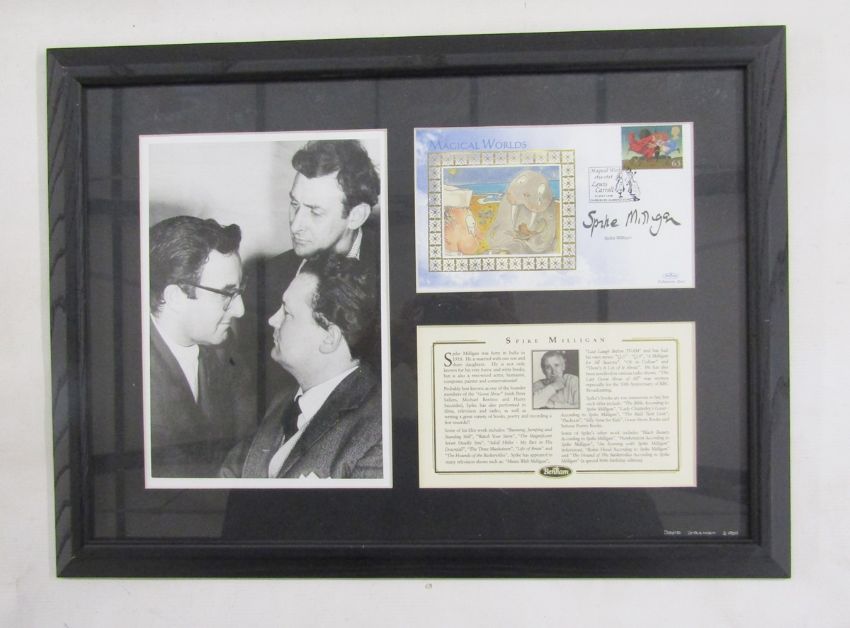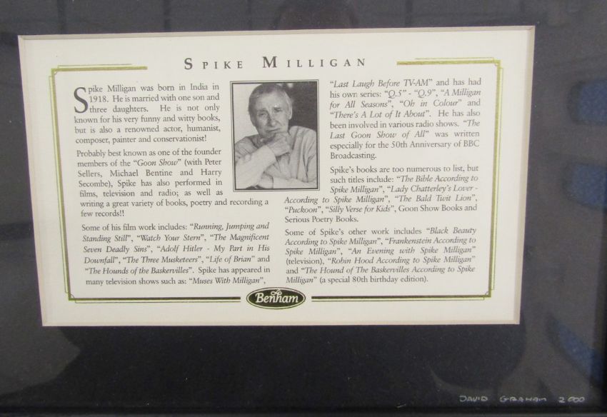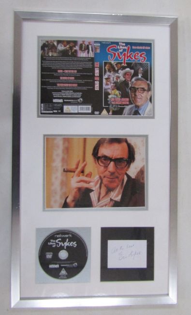 'The Plank' montage including DVD and Eric Sykes' signature, framed, 70cm x 40cm, and 'The Plank' signed by assorted presumed cast members, a Heritage Foundation replica blue plaque for Eric Sykes together with a photograph, framed, a signed Sarah Millican tour poster, 2011, a signed print by Bernard Cribbins, a Dead Comics Society invitation to the unveiling of a blue plaque for Tony Hancock, signed inviting Eric Wise, a Magical World envelope signed by Spike Milligan together with photograph, 'The Likes of Sykes' DVD with Eric Sykes autograph and a large portrait of Eric Sykes, oil on canvas by Keith Turley, dated 2013, 60cm x 90.5cm  Provenance: from the collection of Mr George Ridgeon, Gloucestershire