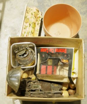 Collection of lighting and lighting related items to include brass, wooden and Art Deco-style examples (4 boxes)