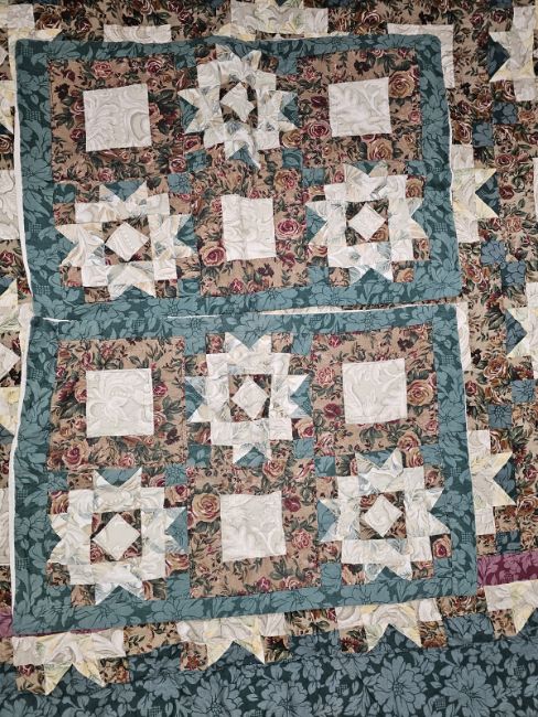 Double handmade patchwork quilt with pillowcases
