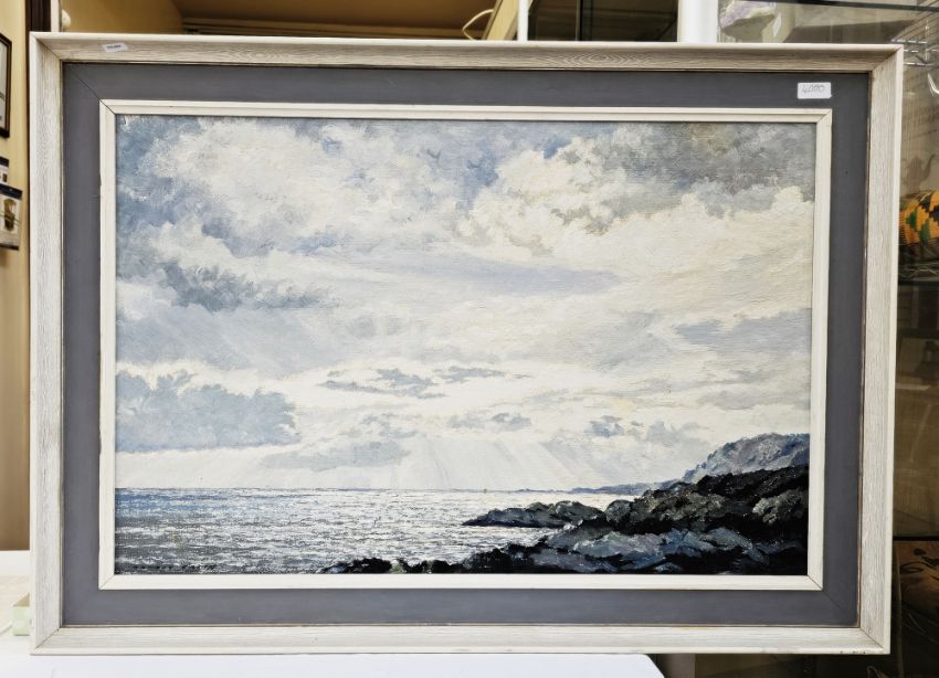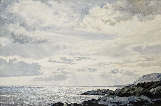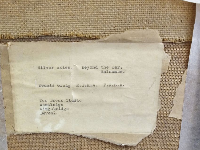 "Silver Skies, Beyond the Bar, Salcombe", signed lower left, framed image size 49.5cm x 75.5cm, bearing artist's label verso