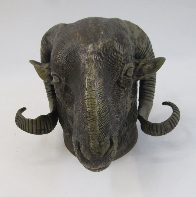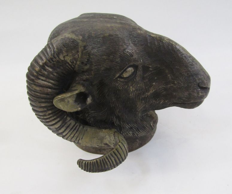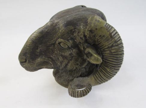 Brass ram's head wall-mounted ornament, 19cm x 15cm