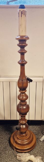 Contemporary Victorian-style wooden turned baluster standard lamp, with faux candlestick top, on stepped circular base, 118cm high