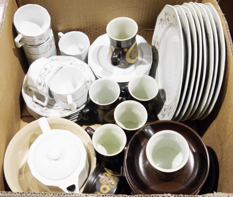 Denby Arabesque part tea service and a Pillivuyt French porcelain Decor Speciale part dinner and tea service (1 box)