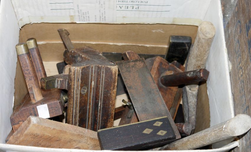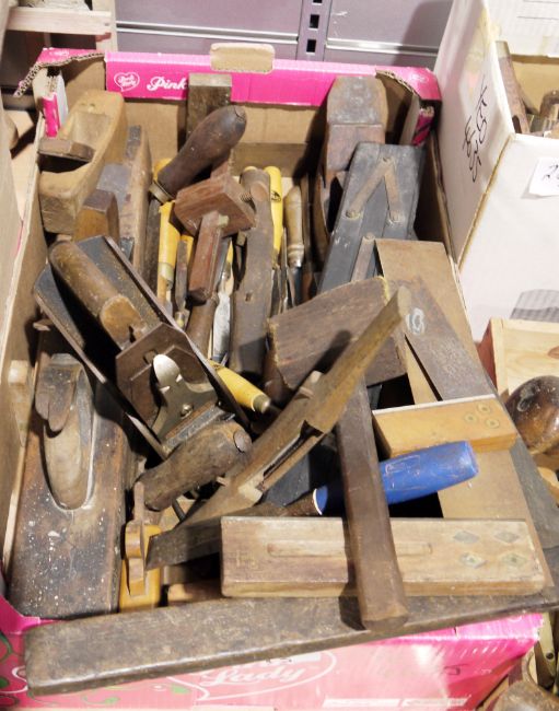 Collection of vintage tools to include hand saws, planes, chisels, set squares etc. (3 boxes)