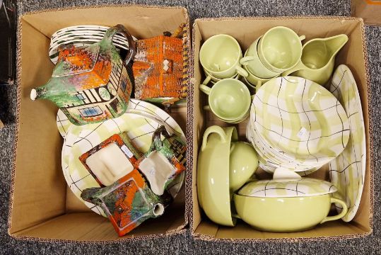 Harlequin Aid Empire porcelain part service, Stoke on Trent comprising five bowls, six side plates, six dinner plates, six tea plates, a meat platter, cups and saucers, one lidded tureen, a jug, etc. and a part tea service 'Ye Olde Inne' comprising teapot, hot water jug, milk jug, sugar bowl and biscuit barrel (2 boxes)