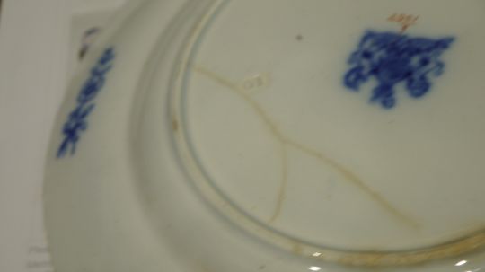 Wear throughout to include pattern wear, surface scratches and firing faults. Some crazing present, some examples far more pronounced than others. Blue paint very blurry on a few examples. On a few examples the central design is very faded. Some cracks and chips present. Please see additional photos.