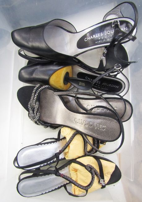 Some of the shoes are difficult to see the size as they have worn off but the majority are size 4 1/2 - 5 1/2 (37 1/2 - 39) with the long boots being EU size 8 (approx size 6)