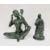 Patinated metal figure of an Eastern girl sitting cross-legged, holding up a mirror while she does her make-up, 56cm high with a metal patinated figure of a wise man, with Oriental characters (2)