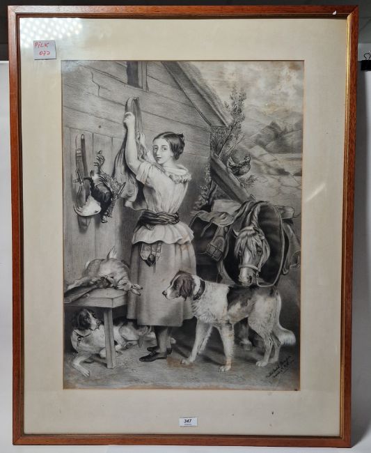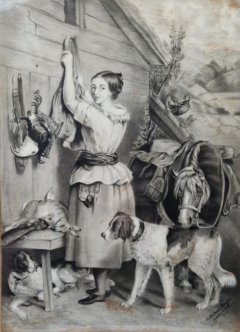 Millie Isobel Thompson (19th century) after Frederick Taylor Graphite on paper Copy of "The Gamekeepers Daughter" by Frederick Taylor, signed and dated March 4th 1878 lower right, framed and glazed, image size 64cm x 47cm