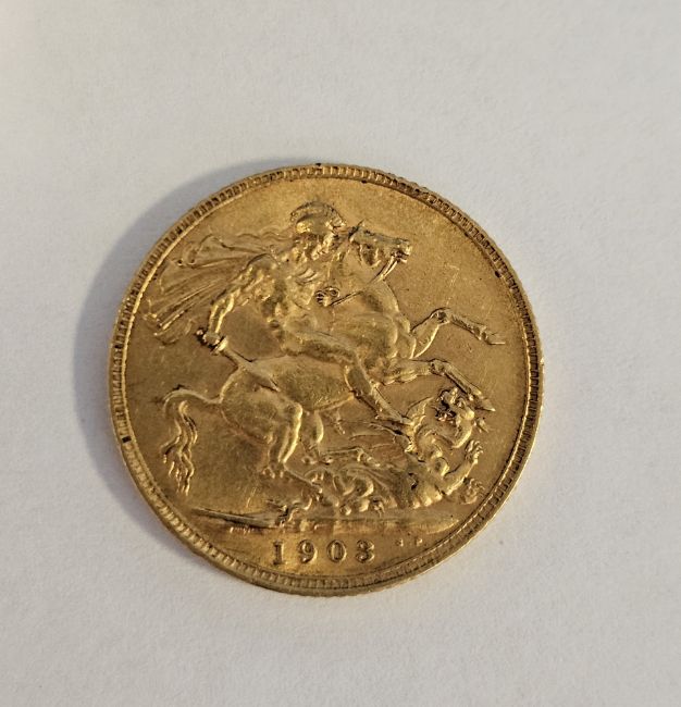Edward VII (1901-1910) sovereign, 1903 bare head right, rev St George and dragon, date below
