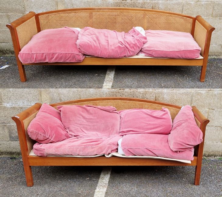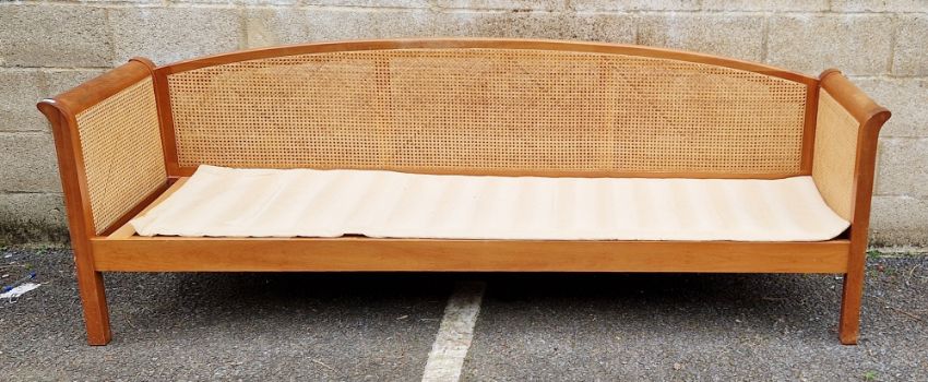 Modern bergere sofa and another matching smaller example, the largest 84cm high x 240cm wide x 64cm deep
