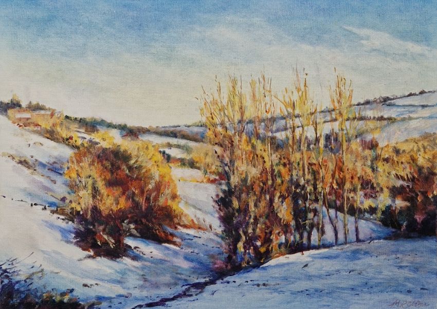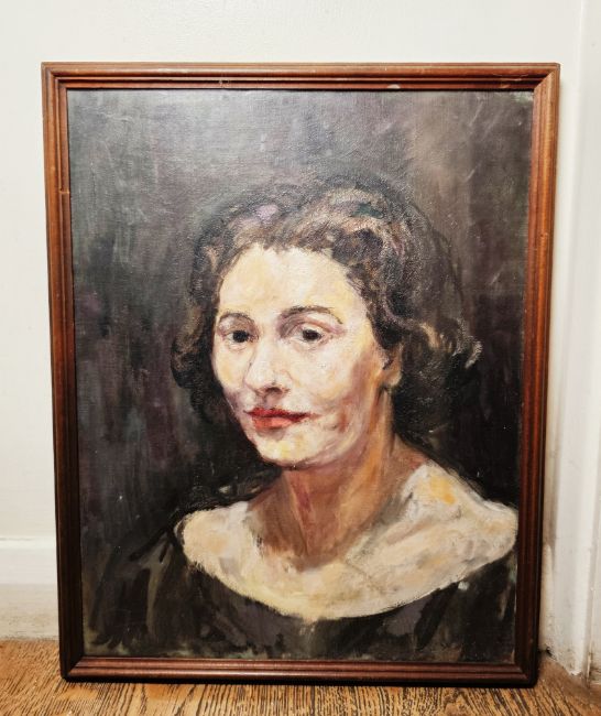 19th/20th century school Oil on canvas Portrait of a woman, unsigned, framed and glazed, 46cm x 36cm Maxine Relton (20th century) Oil on board 'Winter Landscape', signed lower right, 25.5cm x 35.5cm