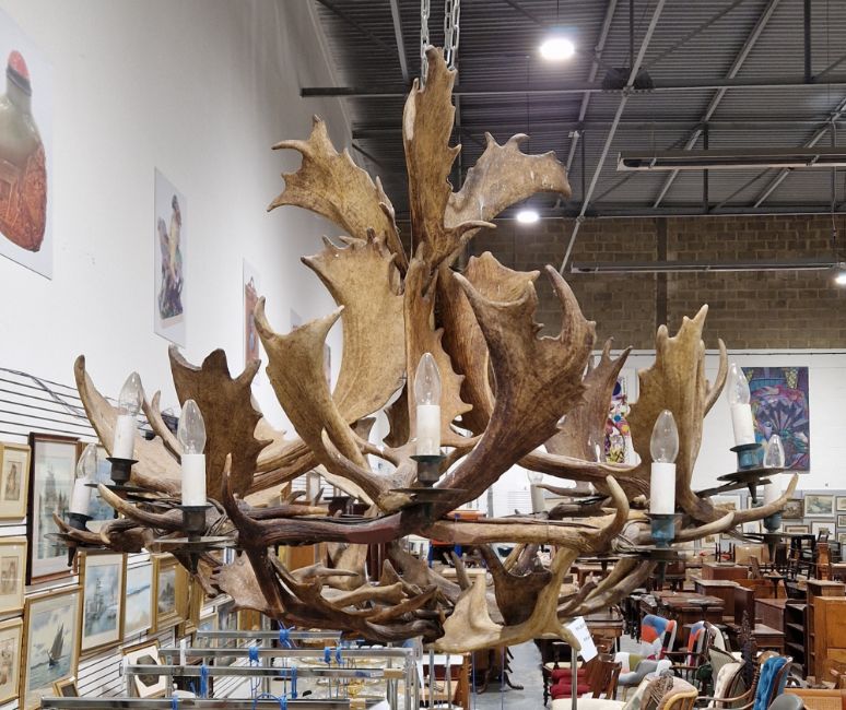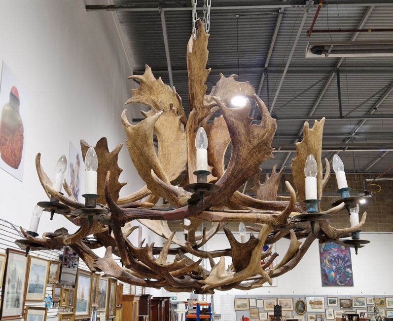 Large 20th century twelve light Stag antler chandelier/electrolier, measuring approximately 130cm diameter by 105cm high