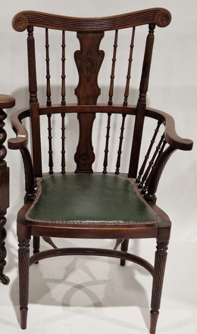 Late Victorian mahogany armchair with turned carved supports, on turned legs, 97cm high