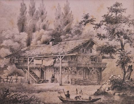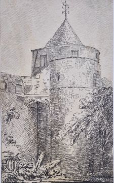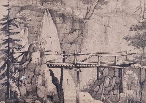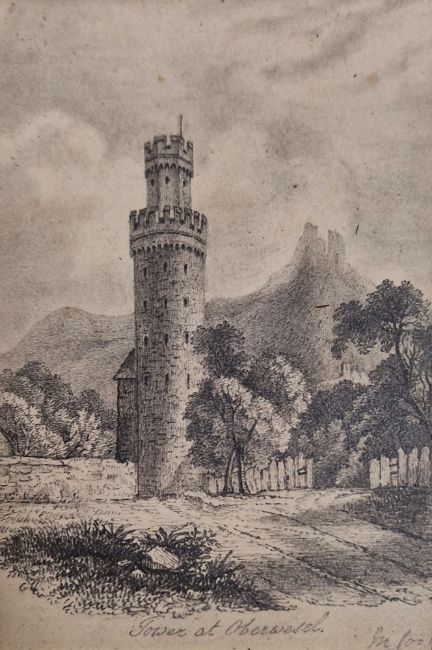 Quantity of sketches of Architectural drawings, mounted, pencil and paper, to include: Miss Cooch 1831, signed and dated verso, M.Denys, Bridge over waterfall, signed verso  Lucy Lathbury, 1830, Back of Lathbury Hall, signed and dated verso Provenance Lathbury Family, Suffolk ( twelve in all)