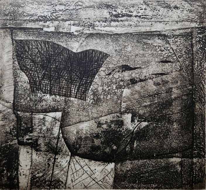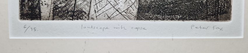 Peter Fox (British b.1952) Monotone etching "Landscape with copse", limited edition numbered 6/75, signed and titled within margin, framed and glazed, 23cm x 24.5cm