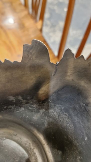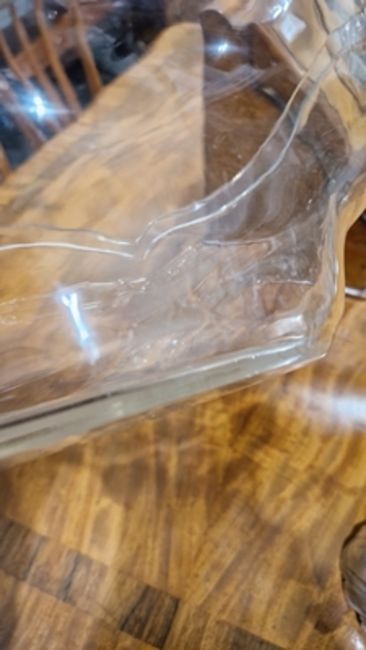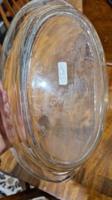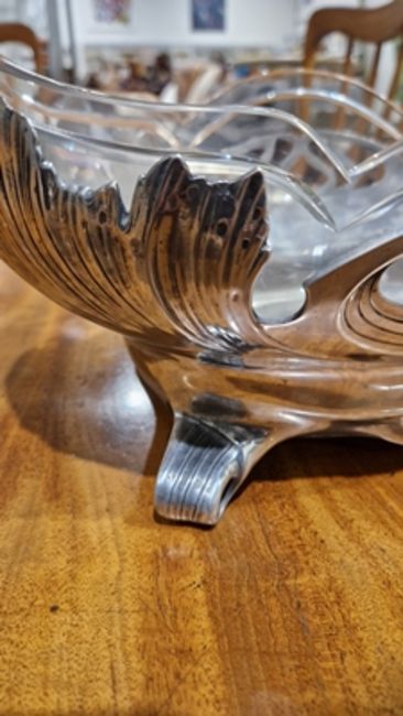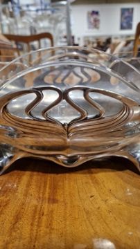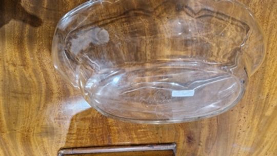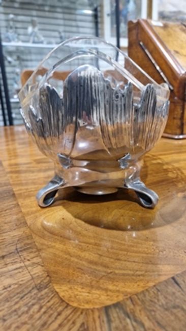 Light surface scratches, marks. Small split and repair to the rim of pewter dish. Glass with scratches and scuffs. General wear and tear.