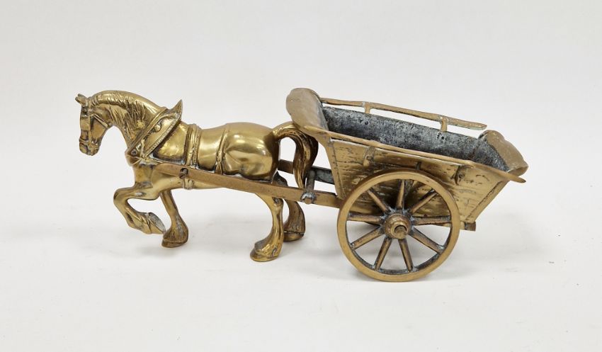 Brass model horse and cart