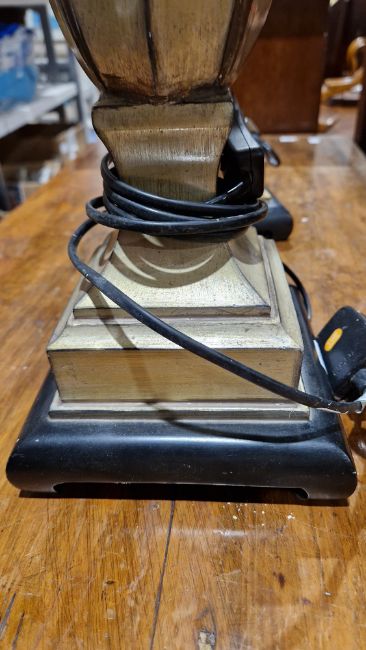 Light surface scratches/marks and accretions. Lamps appear to be made of resin or some composite material. Label says made in china. General wear and tear.