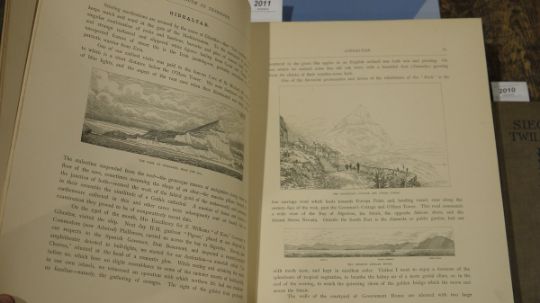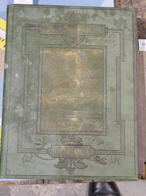 "At Anchor, a Narrative of Experience Afloat and Ashore during the Voyage of HMS Challenger from 1872 to 1876", illustrations by the author, Marcus Ward & Co, 1878, chromolithographic plates to include 'The Hottentots of Humboldt Bay', front board and backstrip detached, full green cloth with blindstamped and gilt decorations which are very worn, large folio, a.e.g