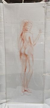 Pair of full length studies of female nudes, 151cm x 60cm (2)