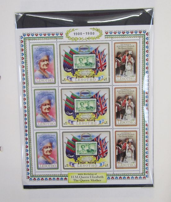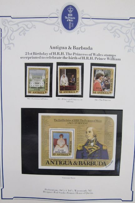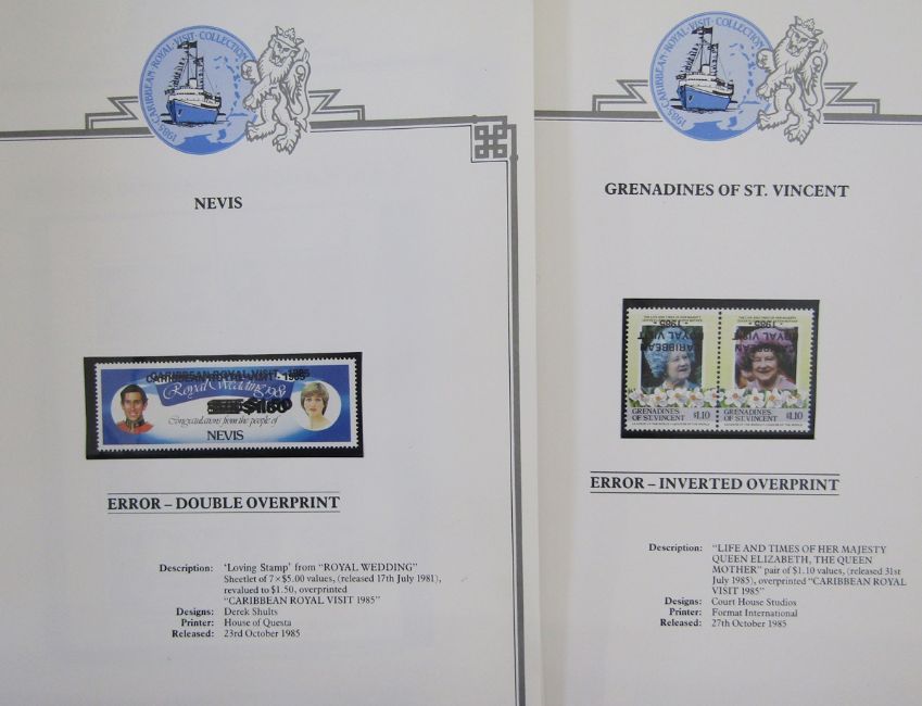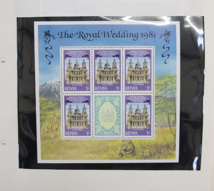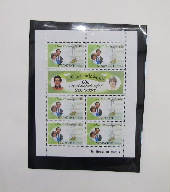Br Commonwealth stamps: Small box of British Royalty issues in folders, albums, booklets, packets, sleeves and loose. QEII 25th Anniversary of Coronation, Prince Charles and Lady Diana’s wedding, Her 21st birthday and Royal baby, visit to Caribbean, and Queen Mother’s 80th. Includes varieties and double overprint errors, mini-sheets, sheetlets and se-tenant. Mostly unmounted mint. 1000s.