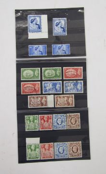 GB stamps: Three stock-cards of mint and used KGVI high values to £1 including 1948 Silver Wedding.