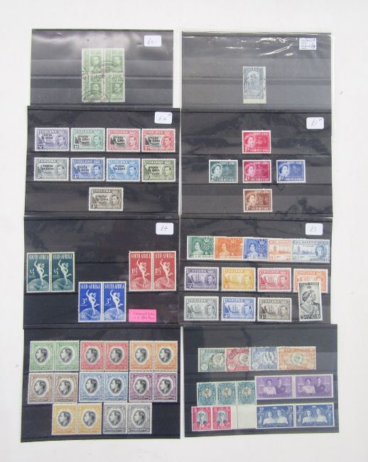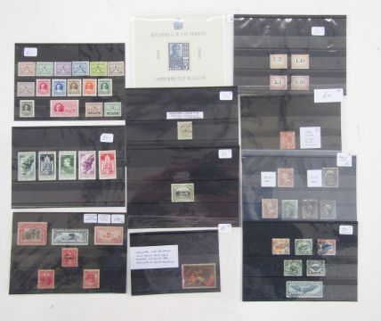 Br Empire & Rest of World: Sleeve of 37 stock-cards, R to V countries, ex dealer, of mint and used, 1860s-1960s. Definitives, commemoratives, air including early USA, official including South Africa 5/- pair (SG O49, cat £180) plus specimen and postage due San Marino to 10l, 1897-1919 issue. Pairs, blocks, mini-sheet, scarcer varieties and print flaws such as QV Turk Island “Neck flaw” SG 63c, cat £40, seen.