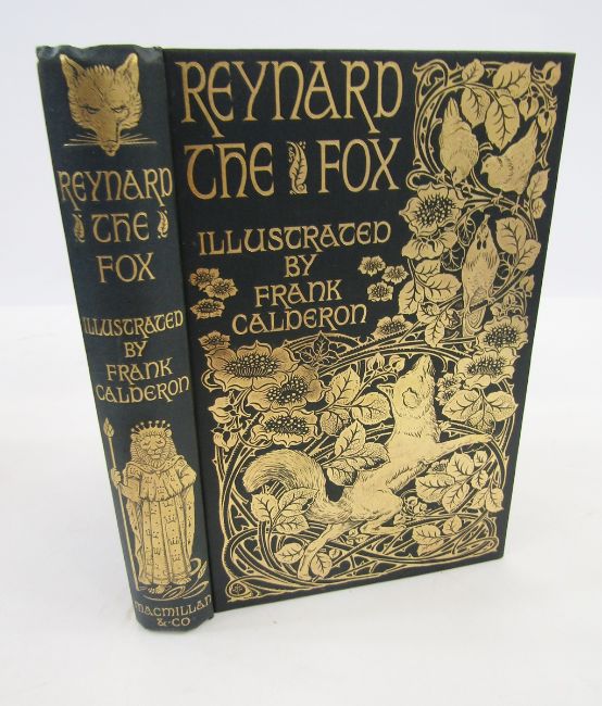 Pictorial boards and bindings - Jacobs, Joseph ( ed.) "Reynard the Fox" ills by Frank Calderon, MacMillan and Co. 1895, slight foxing to the fore-edge and tissue guard, a.e.g., "Hood's Humorous Poems" illustrated by Charles E. Brock, MacMillan & Co. 1891, inked name of half title, a.e.g., "Rip Van Winkle and the Legend of Sleepy Hollow" MacMillan & Co. 1893 ills. by George H. Boughton, a.e.g. "Tales of the Punjab" MacMillan & Co. 1894, inked name on fffep, slight stain to top of back board, a.e.g.,and and four other titles similar bindings, Walton, Isaac "The Compleat Angler..." J.M. Dent, ills E.J. Sullivan, front hinge cracked, inked name inscribed inside front board, pictorial cloth, t.e.g., deckle edges, Riving Washington "Bracebridge Hall" ills by R. Caldecott, MacMillan 1892, full red calf, gilt rules, titles and dentelles, marbled endpapers, a.e.g. with Kipling Rudyard "The Jungle Book" MacMillan & Co. 1912, ills Maurice and Edward Detmold, col.frontis, full red calf with gilt rules, titles and raised bands to backstrip, marbled endpapers and all edges, the boards with surface scratches, and three prize bindings of Kipling's novels for the London School Dental Surgery (see images)