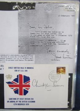 GB & Br Commonwealth: KGV & QEII Royal post (2) and signed covers/cards (26) of notable people including Harold Wilson - former prime minister, Jack Straw - former Home Secretary, Rex Hunt - Governor of Falkland Islands, Chris Patten - Governor of Hong Kong, Christopher Soames - Governor of Rhodesia, 6 different VC heroes and others.
