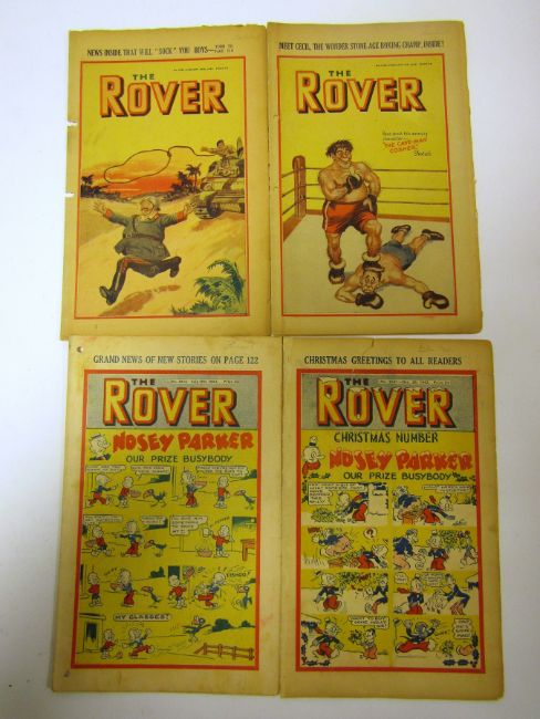 The Rover comics dating from 1940's and 1950's including a complete run covering the years 1945 to 1950, being the issues 1110 to 1331 together with 1940 (issues number 929, 938, 951), 1941 (issue numbers 983, 987, 1000, 1009, 1014), 1942 (issue numbers 1023, 1024, 1025, 1035, 1047), 1943 (issue numbers 1048, 1050 to 1056, 1058 to 1072) bound edition of various issues from 1944, and approximately a further 106 issues from 1940's, 1950's and 1960 (approximately 363 in total)