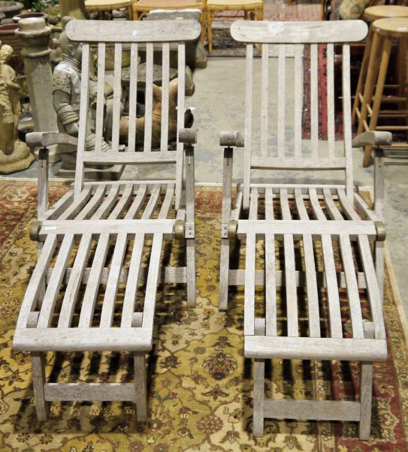 Pair of Mayfair Collection folding teak garden loungers (2)