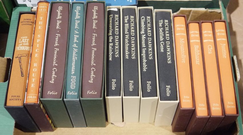 Folio society to include the notebooks of Leonardo Da Vinci, 3 vols box set, Notable Historical Trials, 4 vols box set, Elizabeth David, 3 vols within slip cases, Richard Dawkins, 4 vols box set, Lawrence Durrell, the Alexandra Quartet, 4 seperate vols in slip jackets (4 boxes)