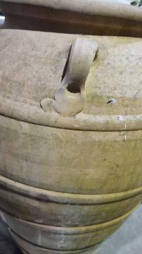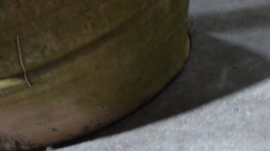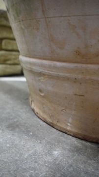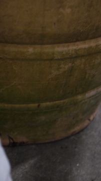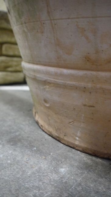 Surface wear and molding imperfections throughout. Chip to base. Dirting and marking as to be expected from long term outdoor storage.