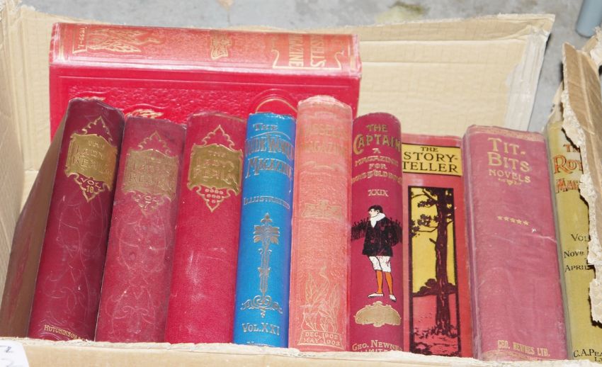 and " The Wide World Magazine" blue gilt boards, bright and clean, " The Lady's Realm' 2 vols and other bound magazine vols ( 2 boxes)