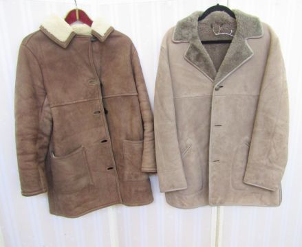 Vintage brown suede sheepskin coat, labelled 'Made in Scotland' and a grey suede sheepskin coat labelled Bailys Glastonbury (2) both size 'M'