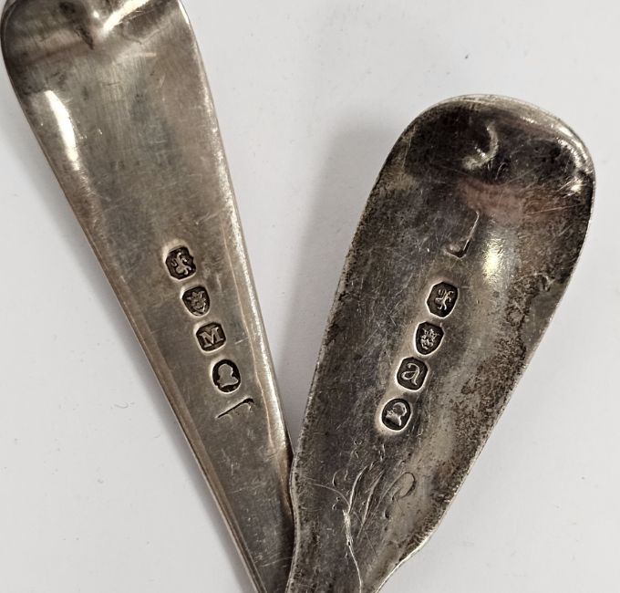 Four George III silver tablespoons, two fiddle pattern, London 1816 and 1817 and two old English pattern, London 1806 and 1807, 22cm long, approximate total weight 7.25ozt (4)
