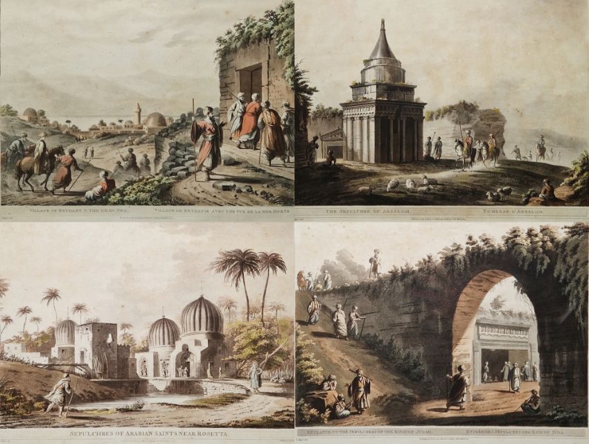 After Luigi Mayer (1755-1803) Lithograph Set of six hand-coloured lithographs of Middle Eastern scenes and buildings, framed and glazed, image size 29cm x 36.5cm (6)