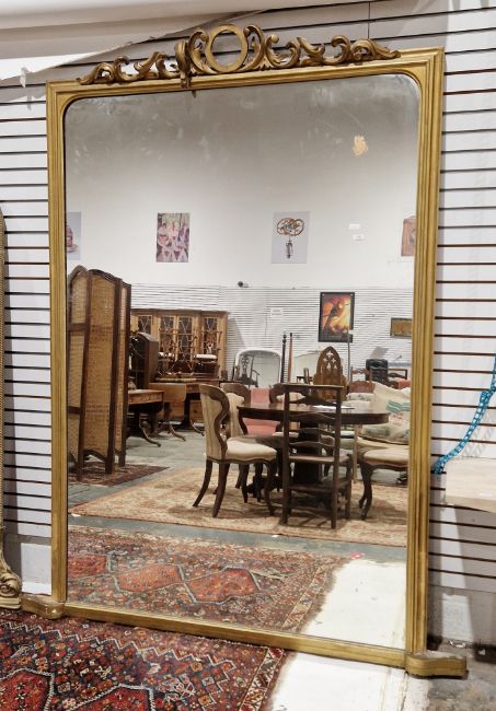 Very large 19th century gilt framed overmantel mirror, of rectangular form, with c-scroll foliate carved pediment,  228cm x 179cm
