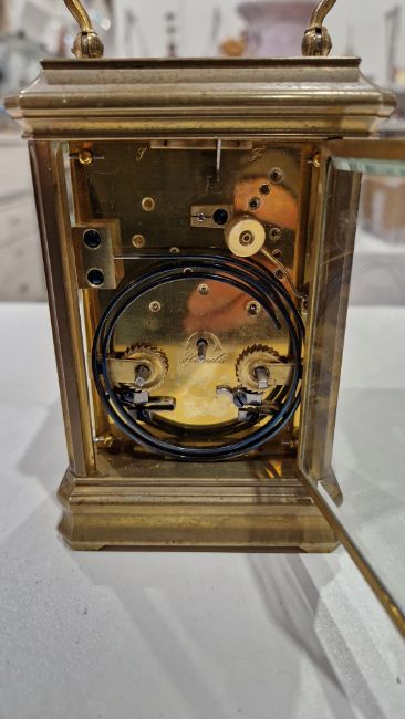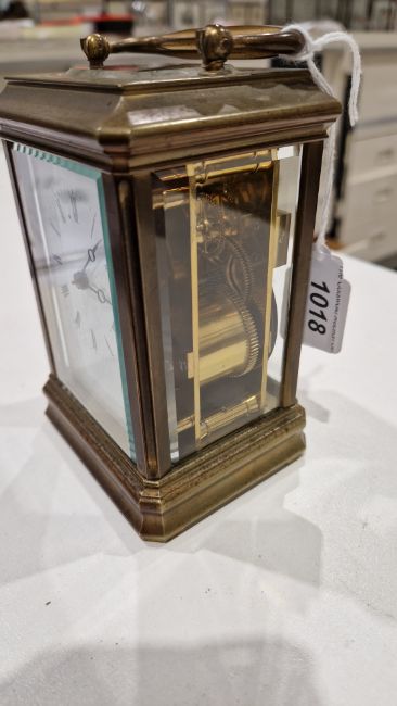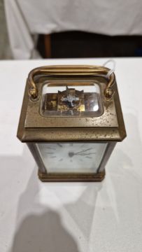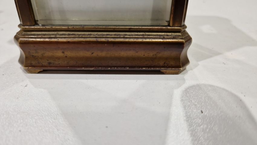 Clock appears to be working/running and chimes, although unable to say whether in full forking order. Some light surface scratches, tarnishing to metal. General wear and tear.