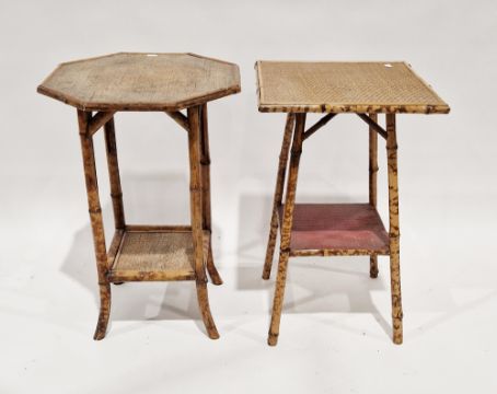 Two Victorian bamboo and pine side tables with undershelf, one of square form, 42cm wide x 67cm high, and the other of octagonal form, 46cm wide x 67cm high (2)