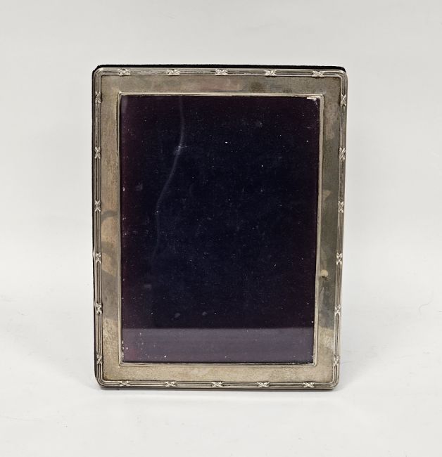 Silver rectangular photograph frame, London 2020, plain with a reeded edge and easel back, 21cm x 16cm