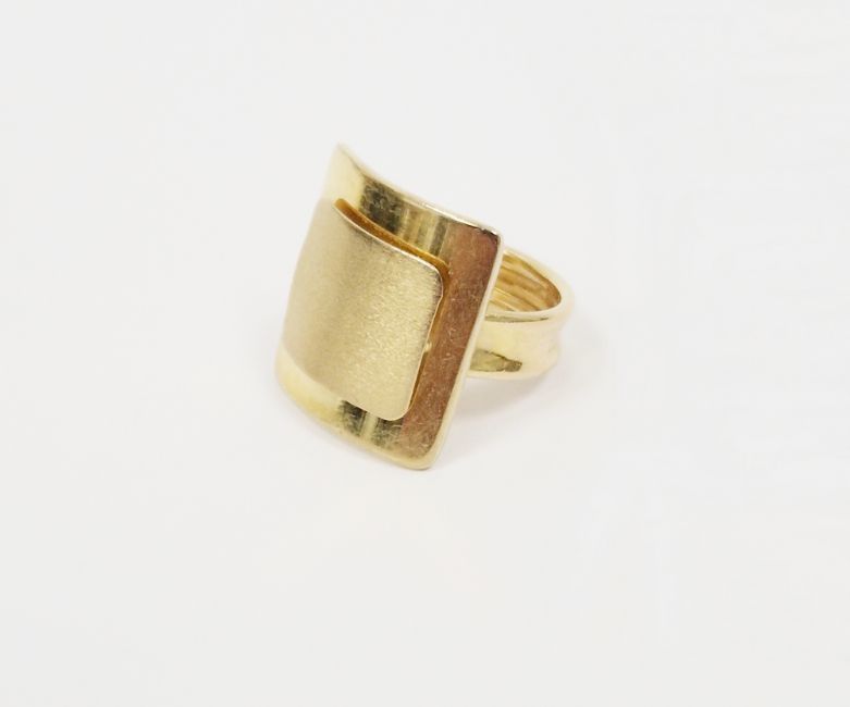 9ct gold modern rectangular panelled curved ring, 5.5g (size P)